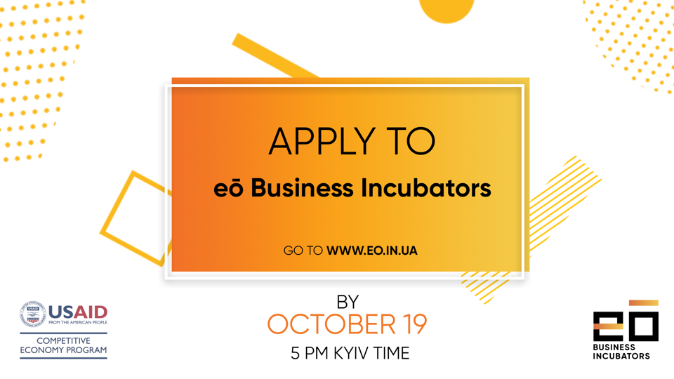 Apply now by completing the application form Application is due by October 19, 5 pm, Kyiv time Any questions? Contact eō at info@eo.in.uaThe program is facilitated by the Програма USAID «Конкурентоспроможна економіка України» (@usaidcep.ua).