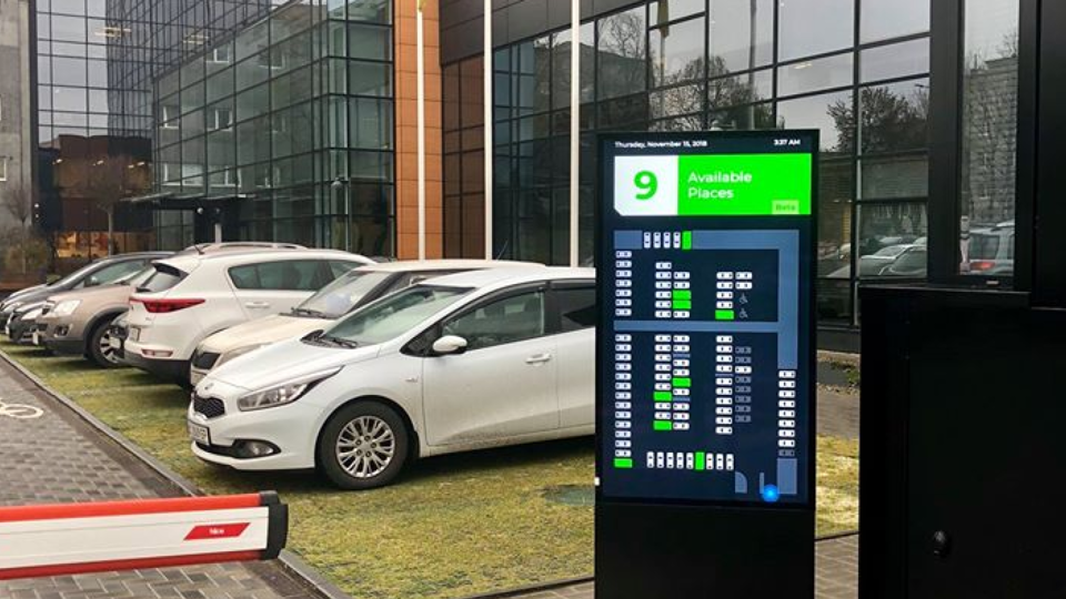 A developed solution consists of a mobile application and LCD display located right at the entrance to the parking. Applying machine learning algorithms, the system analyses the images received from the cameras placed on the roof. Having been processed, the information immediately appears on the screen showing free, occupied, and reserved parking spots.