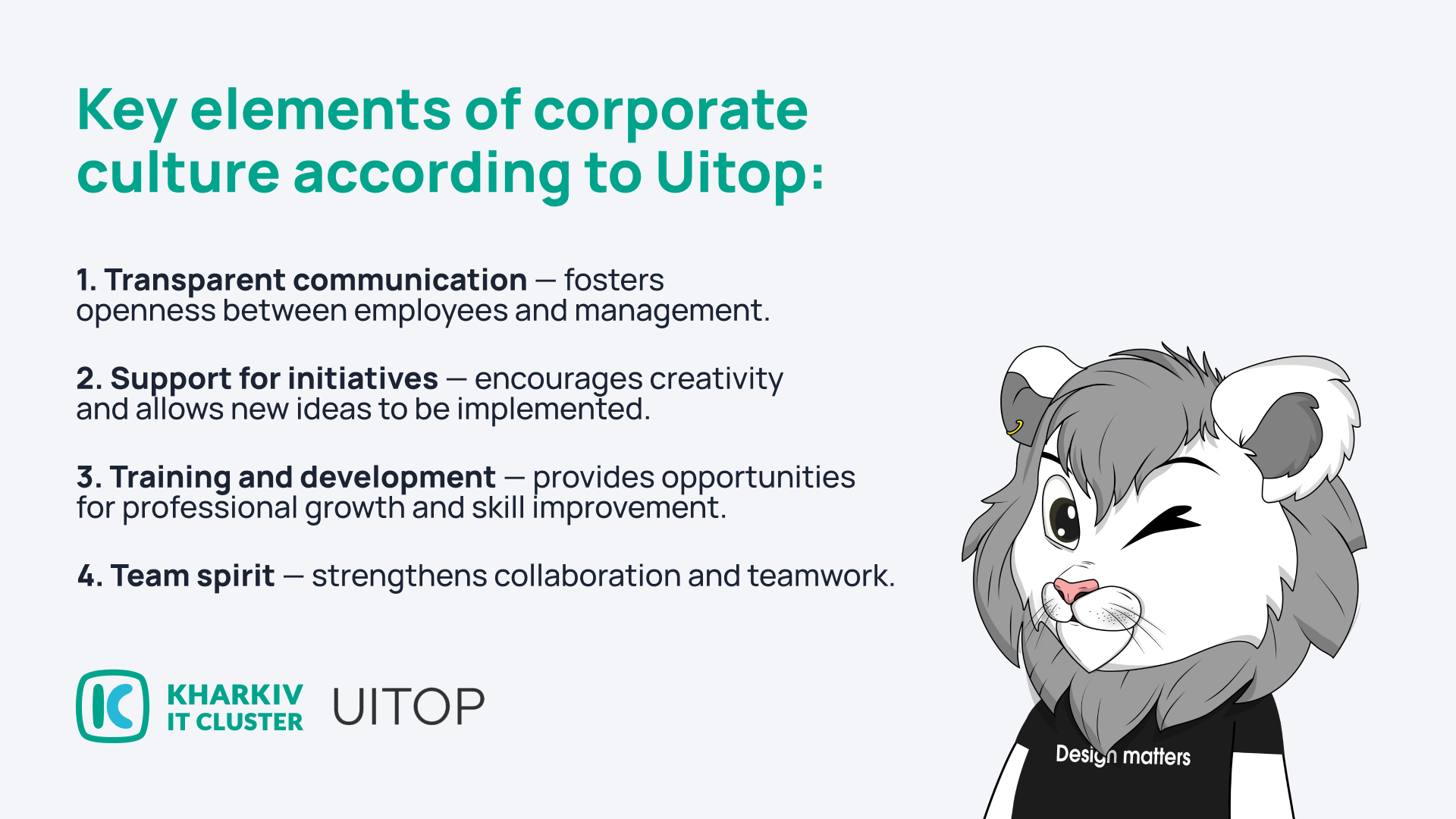 Retaining talented designers is a real challenge for modern companies. Uitop, a member of the Kharkiv IT Cluster specializing in UX/UI design, views corporate culture as a key factor in attracting and retaining top professionals.