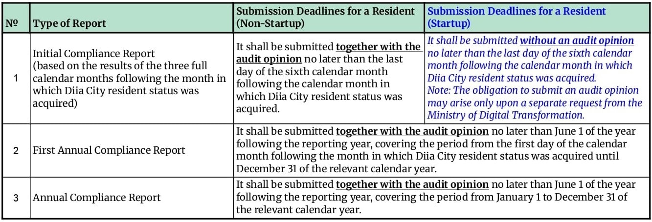 According to Law No. 1667-IX, every Diia.City residents must submit three key types of reports: