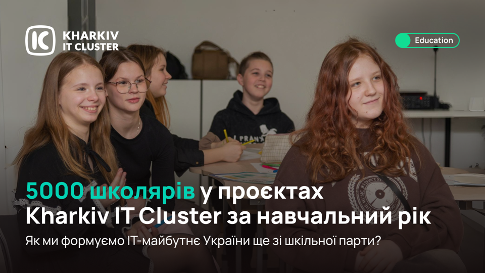 За цей навчальний рік освітні ініціативи Kharkiv IT Cluster охопили 5000+ учасників. Це як 200 шкільних класів — і в кожному з них є той, хто завтра може стати інженером, дизайнером, розробником, викладачем чи підприємцем.