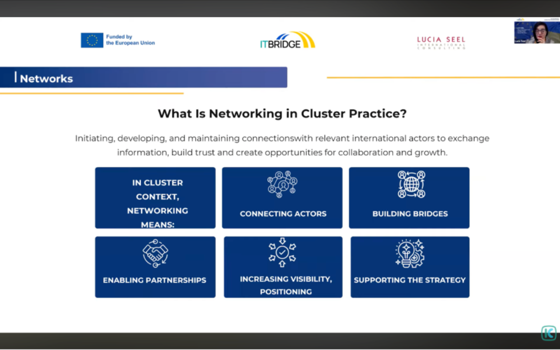 - Нетворкінг — це стратегічна функція, а не хаотична активність. Беріть участь у платформах на кшталт ECCP, TCI, галузевих мережах, проєктах ЄС та місіях — але завжди в узгодженні зі стратегією кластера.