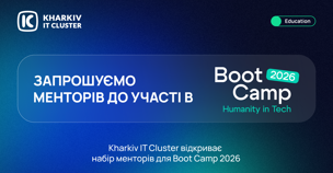 Усі новиниKharkiv IT Cluster відкриває набір менторів для Boot Camp 2026 — двомісячної інкубаційної програми, що поєднує студентів, світчерів і ІТ-фахівців провідних компаній-учасників Kh...