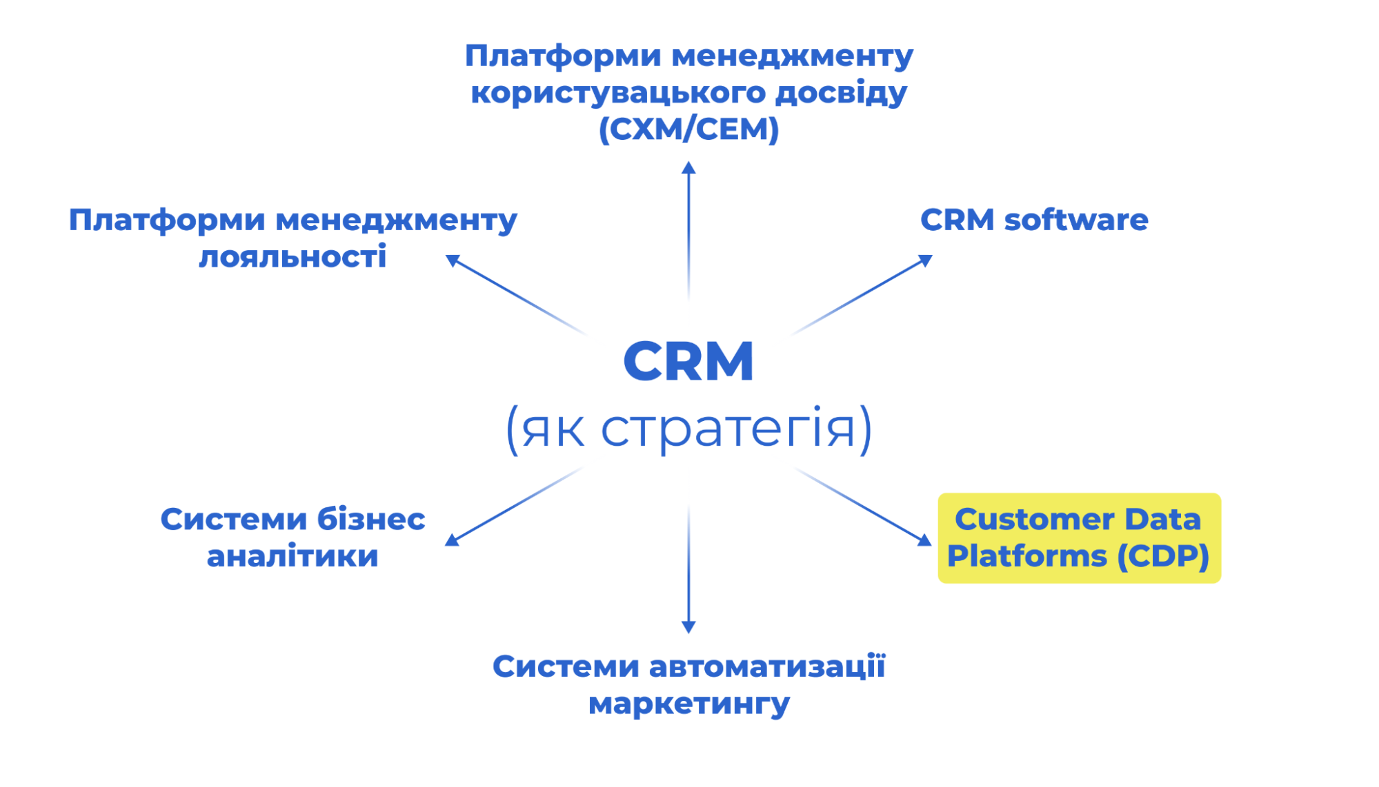 - CDP (платформа клієнтських даних) — розглянемо більш детально.