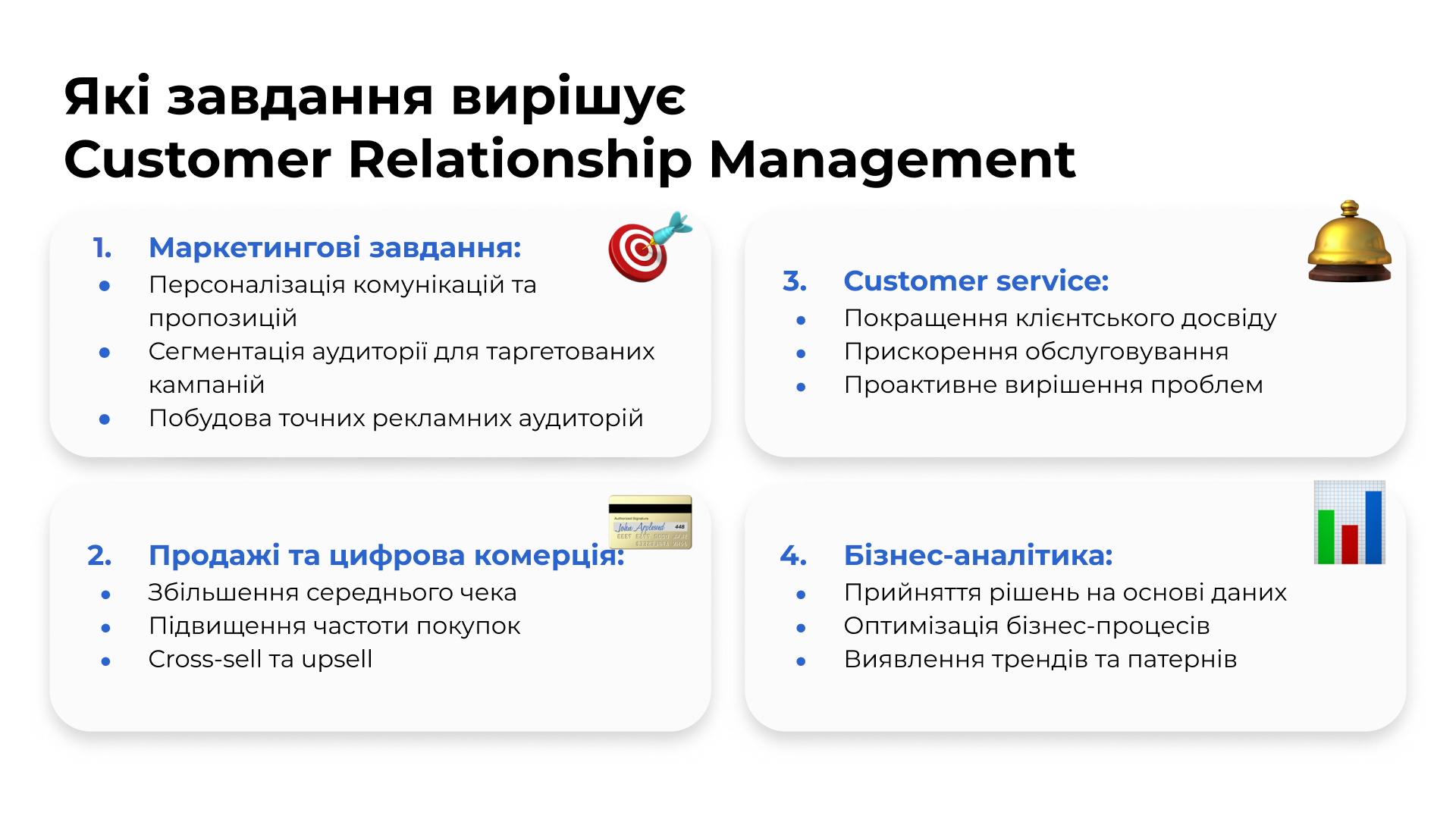 | Результат | Керування процесами продажу | Глибоке розуміння клієнта |