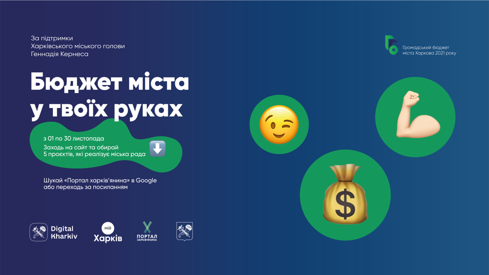 Громадський бюджет – це інструмент прямої демократії, який дозволяє жителям самостійно витрачати частину міських коштів. З 1 по 30 вересня жителі Харкова мали можливість подати свої проєкти до конкурсу, потім вони пройшли відбір та експертизу. А з 1 листопада розпочався новий етап – голосування. Кожен харків’янин може підтримати п’ять проєктів, які на його думку, має реалізувати міська влада. Голосування відбуватиметься за змішаною системою – віддати свій голос ви зможете, як онлайн, так і оффлайн: