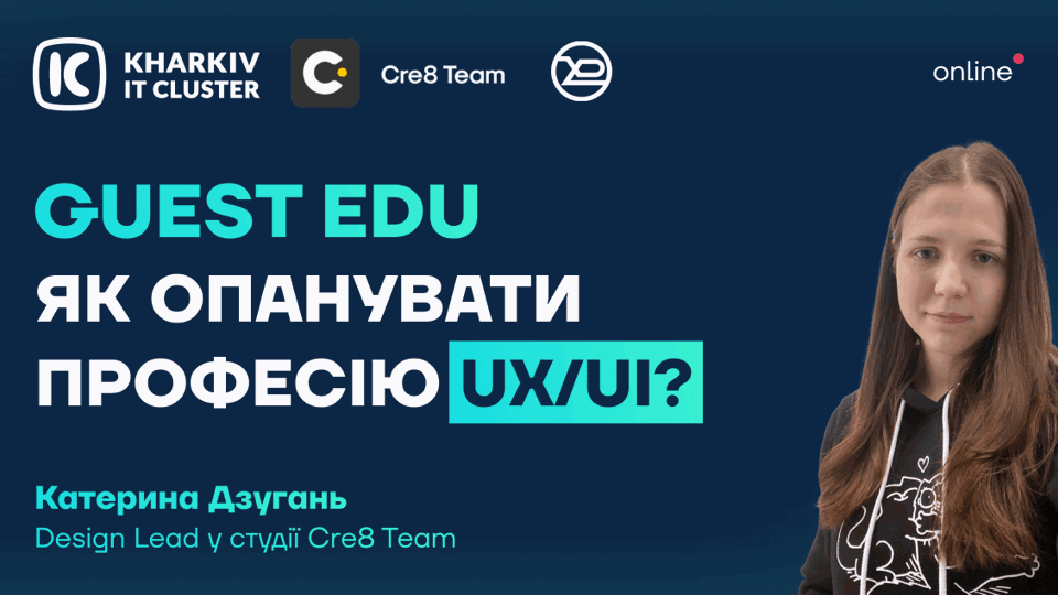 Kharkiv IT Cluster дякує Катерині Дзугань та компанії Cre8 Team за знайомство з професією UX/UI дизайнер, з життєвим циклом дизайн-проєкту, та за те, що поділилися зі студентами ХНУРЕ корисними посиланнями, які допоможуть розпочати кар'єру UX/UI дизайнеру. Довідка: Сre8 Team — це харківська UI/UX дизайн-студія, що працює переважно над мобільними застосунками, створює складні SaaS проєкти, інтерфейси фізичних продуктів і ще безліч крутих речей у сфері ІТ.