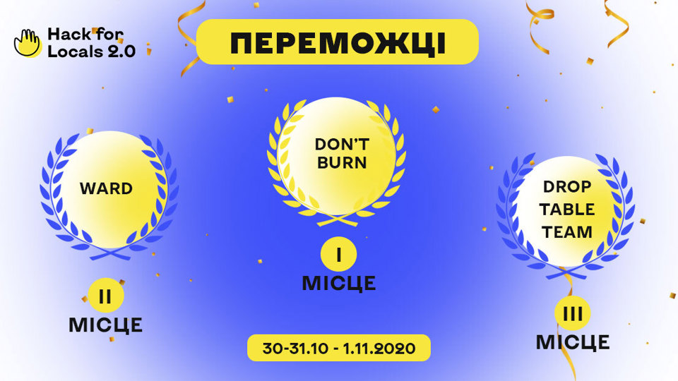 - ще один партнер хакатону — Луганська обласна державна адміністрація — відзначила команду Don’t Burn подарунками і надасть інформаційну, організаційну та консультаційну підтримку задля реалізації ідеї;