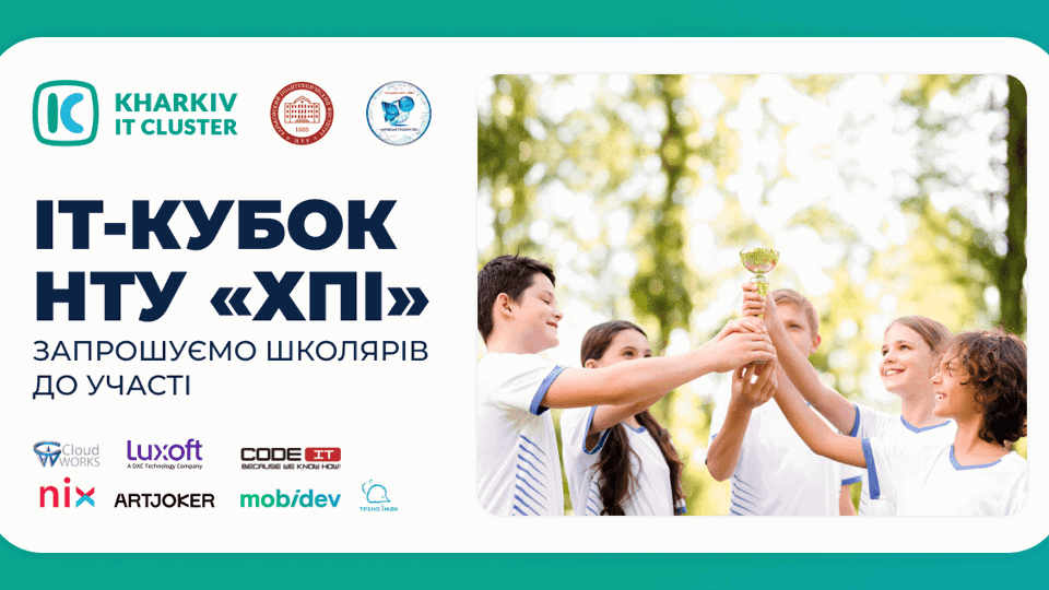 ▫️Kharkiv IT Cluster ▫️Молодіжне наукове товариство Q-BIT ▫️Cloud Works ▫️NIX Деталі на сайті: https://web.kpi.kharkov.ua/kmmm/uk/it-kubok-ntu-hpi/ 📞 Адміністратор IT-турніру: Наталія КАРПЕНКО +380971134519Підпишись на наш телеграм канал, щоб бути у курсі вступної кампанії 2023