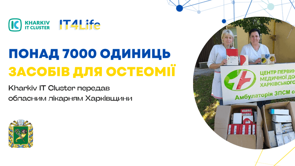 Ще з весни в медичних закладах виникла потреба у калоприймачах та інших засобах для остеомії. Частіше за все ці засоби є дороговартісними розхідниками, які треба змінювати приблизно кожні три дні. То ж командра Kharkiv IT Cluster звернулася за допомогою до Medical Mercy Canada. Medical Mercy Canada — це канадська волонтерська організація, яка допомогла зібрати та передати на Харківщину велику кількість медичних засобів. Medical Mercy Canada зібрали дві палети необхідних медичних засобів, які силами волонтерів Благодійного фонду IT4Life було доставлено до Харкова. Всі засоби були передані в лікарні Харківщини, де рятують вже не одне життя. Розбудова партнерських зв'язків та налагодження партнерських відносин — це пріоритетний напрям нашої діяльності. Ми вже співпрацюємо з організаціями та окремити волонтерами зі Сполучених Штатів, Ізраїлю, Франції, Іспанії.ІТ-спільнота Харкова продовжує працювати на користь рідного міста, допомагати жителям міста, медикам, рятувальникам, захисникам.