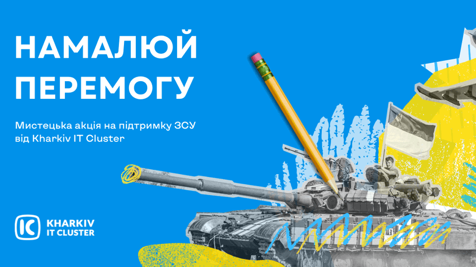 Долучайся до нової ініціативи від Kharkiv IT Cluster – «Намалюй Перемогу»! Ця акція – твоя унікальна нагода долучитися до боротьби та підтримки ЗСУ. Нам байдуже на твій вік, адже ми переконані — кожен здатен внести однаково значущий вклад у Перемогу.
