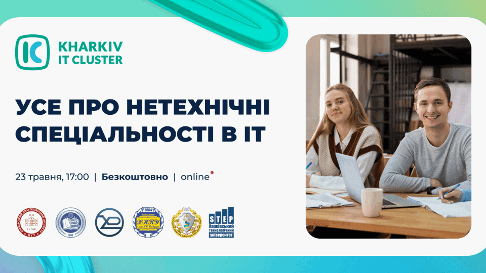 17:00 — початок вебінару Non-Tech в ІТ 17:10 — Національний технічний університет «Харківський політехнічний інститут» розповість усе про менеджмент та його роль в ІТ.Спікер: Наталія Шматько — доктор економічних наук, професор кафедри менеджменту, директор стартап центру «SPARK» НТУ «ХПІ».