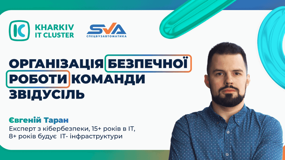 У сучасному цифровому середовищі, яке постійно підключене до мережі Інтернет, кібербезпека набуває особливої ваги. З огляду на широке поширення мобільних пристроїв, хмарних технологій, соціальних мереж та Інтернету речей, наші цифрові сліди присутні майже скрізь. Захист особистих даних, фінансової інформації, медичних записів, комерційних даних та інших конфіденційних відомостей вимагає від нас ефективних заходів безпеки. Додатково, кіберзагрози мають значний глобальний вплив, зачіпаючи критичну інфраструктуру, електронну комерцію, урядові системи та інші важливі сектори. Відповідно до цього, захист робочого середовища постає пріоритетом для організацій. 7 лютого на вебінарі за підтримки Kharkiv IT Cluster і компанії СПЕЦВУЗАВТОМАТИКА, Таран Євгеній, експерт з кібербезпеки, розповів, як технічно убезпечити команду, навіть якщо вона розосереджена по всьому світу і які надійні інструменти необхідні для реалізації захищеної мережевої архітектури.