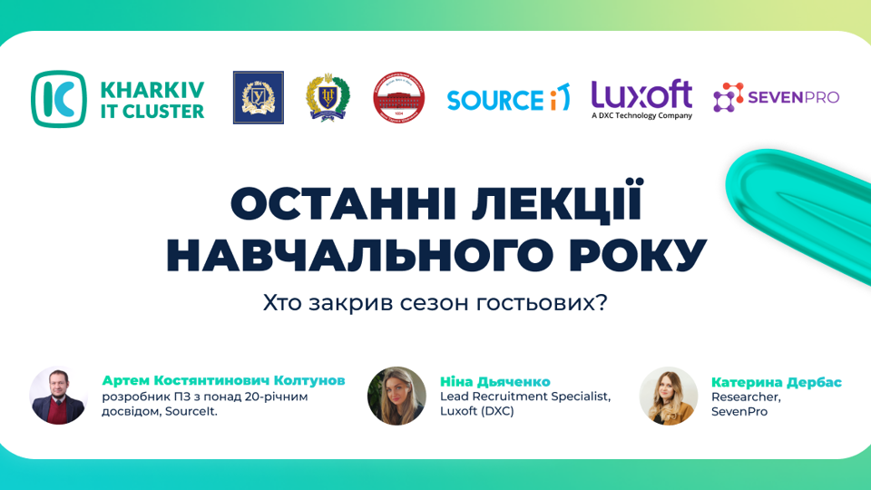 SOURCE iT - ІТ курси, першоджерело розумних айтішників. Щоб допомогти обрати напрям, компанія проводить авторський тест на профорієнтацію та кличе на тематичні зустрічі. Щоб зробити професіоналами — знаходить найкращих практиків із талантом навчання. Щоб тримати в тонусі — влаштовує воркшопи на вузькі теми. SevenPro — компанія, яка займається розробкою програмного забезпечення й ІТ-консалтингом більше 5 років з головним офісом у Харкові. За цей час компанія виконала більше 50 проєктів для клієнтів з усього світу, зокрема США, Європи, Скандинавії, Ізраїля, Саудівської Аравії та Японії. SevenPro прагне об’єднувати професіоналів з різним досвідом, щоб задовольнити потреби своїх клієнтів, а також змінювати світ навколо за допомогою своїх проєктів. Саме тому професіонали з SevenPro є постійними гостями у заходах IT Cluster. Luxoft — надійний партнером у розробці й постачанні ефективних, масштабованих програмних рішень, орієнтованих на результати для критично важливих процесів. Компанія має більше 17000 працівників у 28 країнах світу. Спираючись на розширену екосистему партнерства й широкі знання галузі, Luxoft забезпечує технологічну продуктивність, операційну ефективність і постійні інновації в багатьох галузях.Підпишись на наш телеграм канал, щоб бути у курсі подій