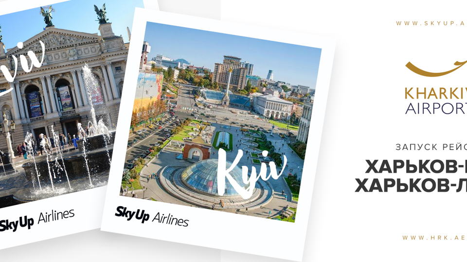 Аеропорт «Харків» спільно з авіакомпанією SkyUp Airlines розширює карту внутрішніх перельотів. Вперше в Україні будуть запущені рейси Харків-Львів і вже з жовтня запустяться рейси до Києва. Подорожі по Україні стали ще доступнішими!