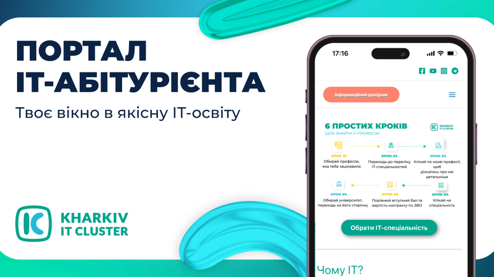Перейди за посиланням і зроби перший крок у майбутню професію зараз: ⬇Портал абітурієнта — популяризація ІТ-галузі серед молоді й комфортний шлях абітурієнтів в ІТ!