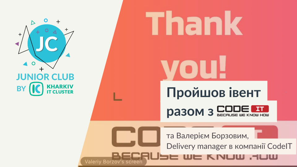 Kharkiv IT Cluster разом із компанією CodeIT провели воркшоп на тему Scrum & Kanban для закритого ком’юніті Junior Club. 🔥З нами спілкувався Валерій Борзов, Delivery Manager у CodeIT. Торкнулися Agile, поговорили про принципи, терміни й вимоги та розібралися, що ж насправді можна вважати за Scrum і з чим не варто плутати Kanban. Дякуємо компанії CodeIT, що активно бере участь в освітніх проєктах Kharkiv IT Cluster.