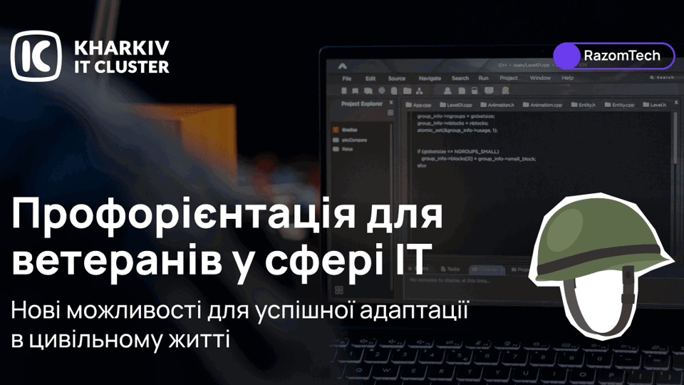 📢 Безоплатність та відсутність обмежень у часі Учасники можуть самостійно планувати своє навчання та прогресувати в зручному для них темпі. Це особливо важливо для ветеранів та ветеранок, які можуть мати інші зобов'язання або специфічні потреби адаптації. 📢 Широкий спектр професій Серед них є як технічні, так і нетехнічні напрями. Понад 30 професій, представлених в курсі дозволяють кожному учаснику знайти свій шлях в ІТ, незалежно від рівня попередньої технічної підготовки. Для тих, хто ще не впевнений у своєму виборі, курс допомагає дослідити різні варіанти й визначити найкращий напрям для подальшого розвитку. 📢 Чат підтримки Учасники можуть отримати відповіді на будь-які запитання щодо навчання, кар'єрних перспектив та розвитку в ІТ-секторі. Така підтримка надає додаткову впевненість і допомагає уникнути труднощів під час навчання. 📢 Допомога в побудові професійного роад-меп Після проходження курсу ветерани та ветеранки зможуть впевнено обрати майбутній кар’єрний шлях в ІТ-галузі та матимуть можливість долучитись до освітніх програм від партнерів Kharkiv IT Cluster, пройти курси перекваліфікації та стартувати свою ІТ-кар’єру.Можливості в ІТ для ветеранів 🚀