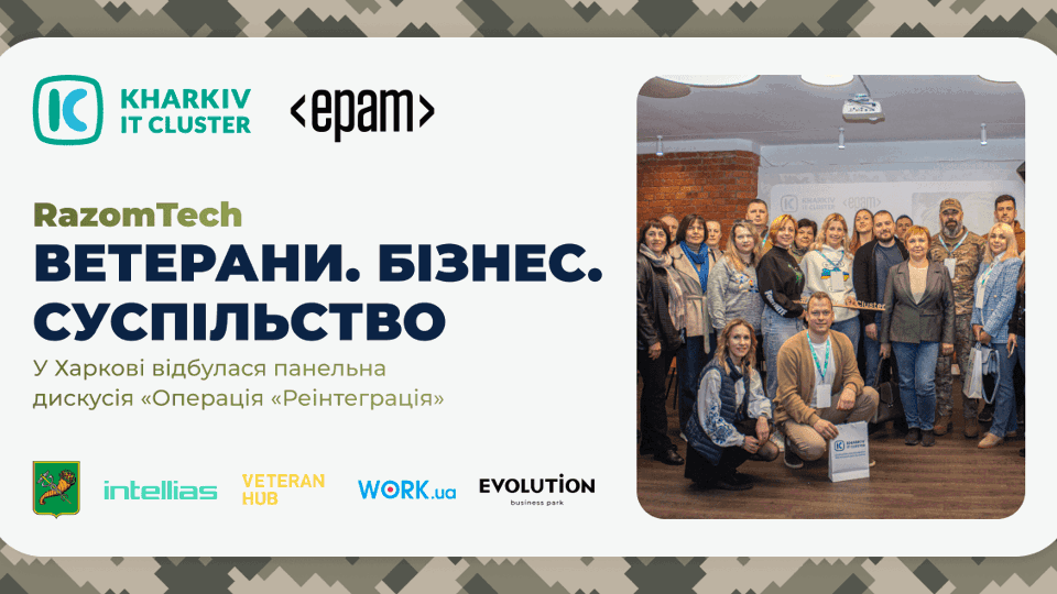 15 травня спільнота Kharkiv IT Cluster та ІТ-компанія EPAM Україна ініціювали живу панельну дискусію у Харкові з питань реінтеграції ветеранів і ветеранок.