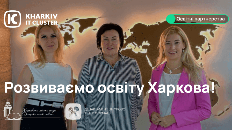 До обговорення співпраці долучилися Ольга Шаповал — виконавча директорка Kharkiv IT Cluster, Ольга Деменко — директорка Департаменту освіти Харківської міської ради, Галина Литвинець — директорка Департаменту цифрової трансформації Харківської міської ради.
