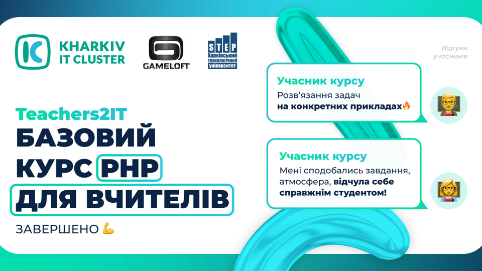 11 березня завершився курс від компанії Gameloft проєкту Teachers2IT від Kharkiv IT Cluster «Основи вебпрограмування за допомогою PHP», який затверджений на базі Харківського технологічного університету «ШАГ»💻