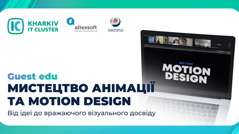 Kharkiv IT Cluster висловлює вдячність Козирському Богдану —Motion Designer, CG Generalist у компанії AltexSoft, за цікаву й пізнавальну лекцію. Завдяки його знанням, багато учасників змогли дізнатися більше про професійні аспекти дизайну, а також надихнулися на нові ідеї для власної роботи.Довідка: