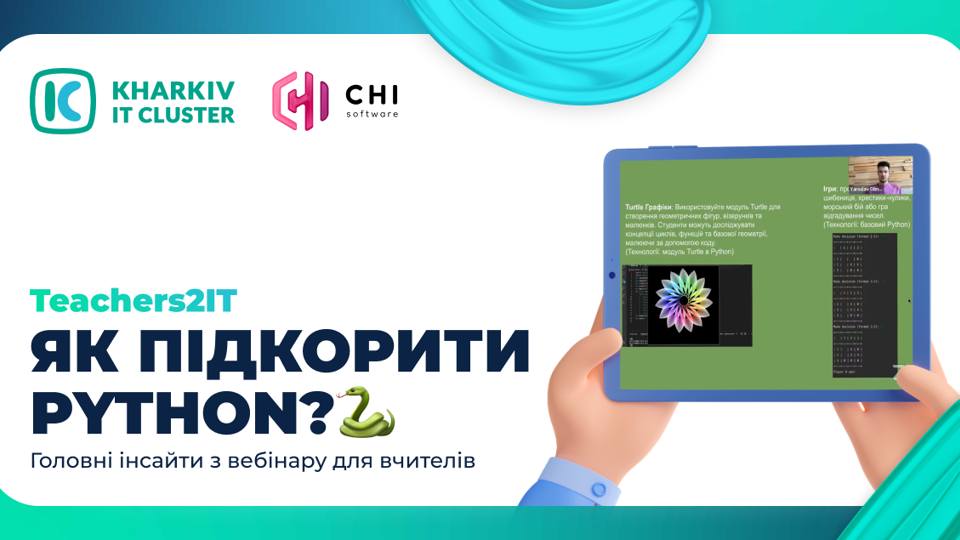 У часи перенасичення швидкою та легкою інформацією школярів стає дедалі складніше зацікавити в навчанні. Як знайти вихід із цієї ситуації та до чого тут Python, розповів Ярослав Олійник. 🗣 Ярослав Олійник — Python Developer at CHI Software, спеціаліст із досвідом 5+ років у Python-розробці, 2+ роки в ролі ментора. Працював із проєктами в різних сферах: SEO, IOT, Education, AgTech, E-commerce і має досвід навчання програмуванню! Вивчення Python — це шлях до розширення можливостей у сфері програмування, оскільки ця мова є простою для вивчення, універсальною в застосуванні й має велику спільноту підтримки.Чому саме варто розпочинати навчання програмуванню з мови Python ?