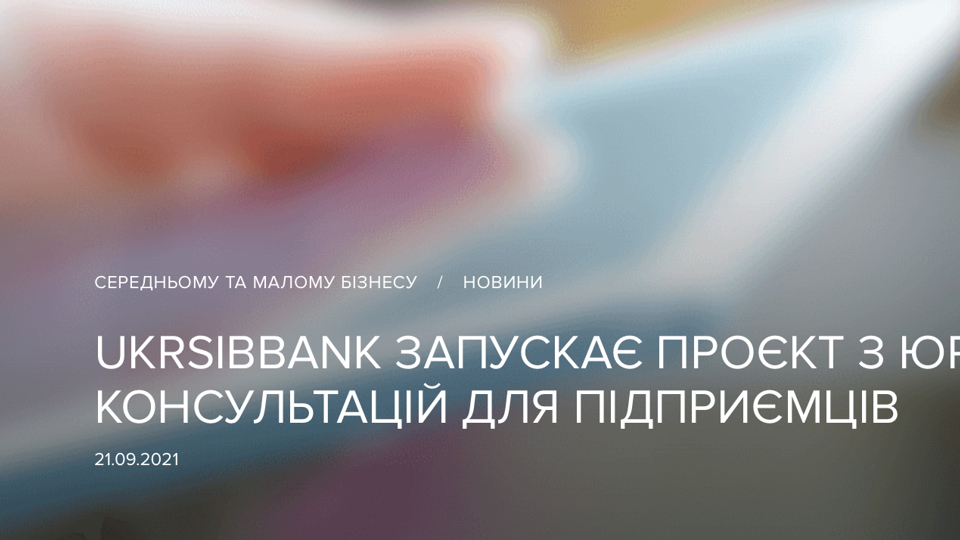 UKRSIBBANK BNP Paribas Group запускає серію юридичних відео-консультацій для українських підприємців середнього та малого бізнесу. Це послідовний крок програми банку «Women in Business», що спрямована на розвиток підприємницького потенціалу у жінок. Юридичні консультації будуть цікавими та корисними для усіх клієнтів підприємців та тих, хто планує розвиток власної справи.