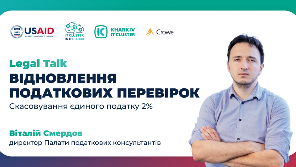 📹 Якщо ви не мали змоги особисто приєднатись до зустрічі або хочете переглянути івент — переходьте за посиланням. На YouTube каналі Kharkiv IT Cluster є запис зустрічі.Ми хотіли б висловити щирі слова подяки компанії Crowe Mikhailenko за надану підтримку нашому Legal Talk від Kharkiv IT Cluster у проведенні вебінару. Висловлюємо подяку компаніям Happy Monday, Odessa IT Family та 1991 Accelerator за їхню підтримку в інформаційному просторі, завдяки якій наша подія стала корисною для широкої аудиторії ІТ-компаній.