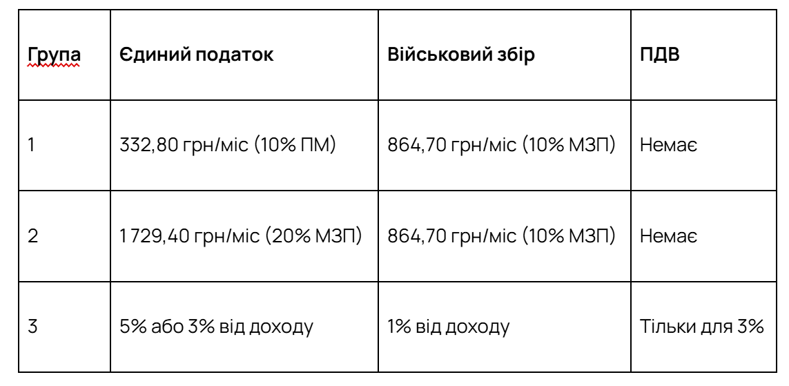 - мобілізовані, контрактники, резервісти (ФОП без найманих працівників)