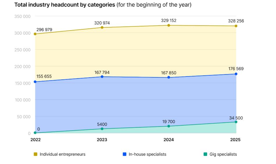 Кількість спеціалістів ІТ-галузі за категоріями (за даними YCMarket )